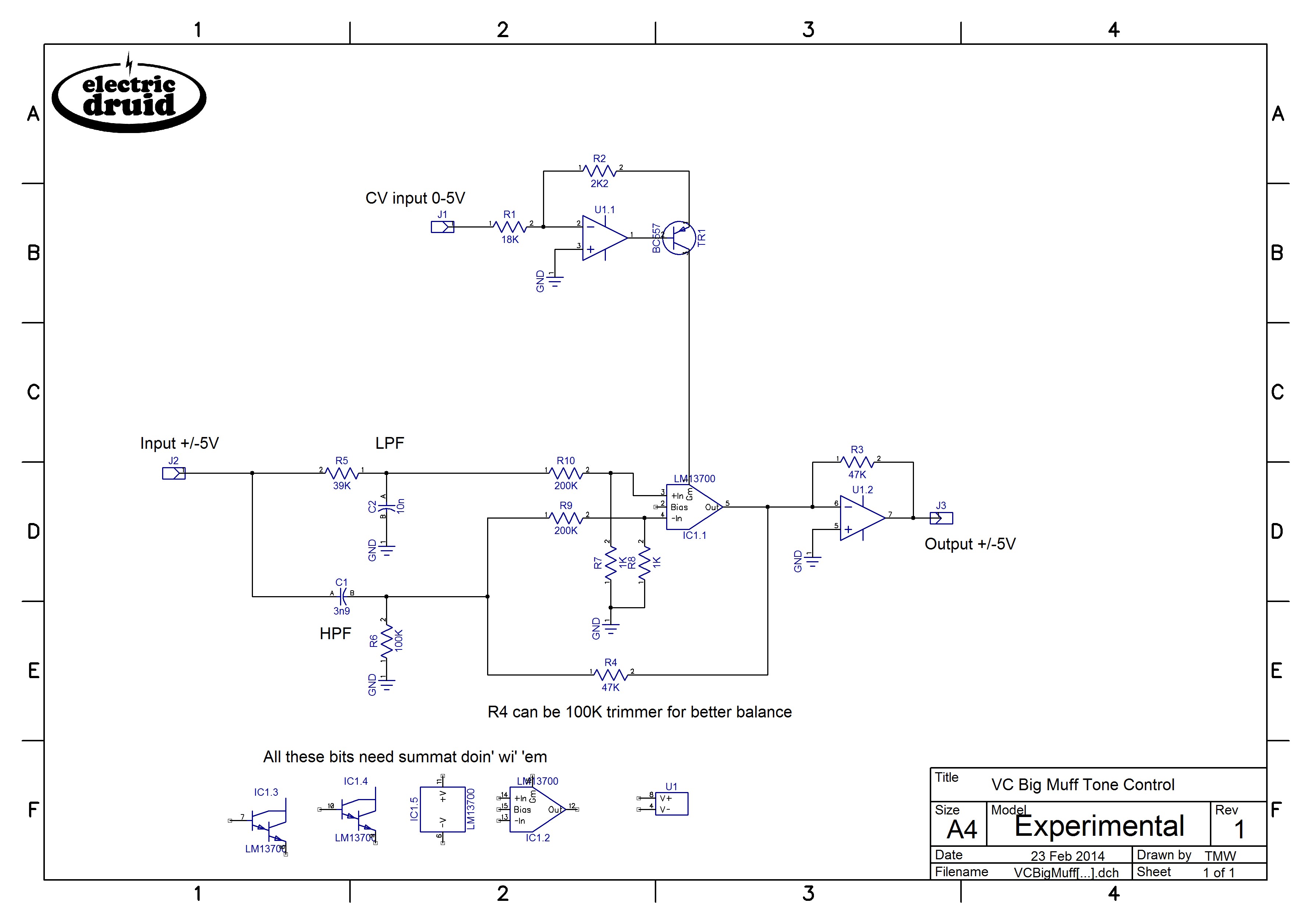 What’s a “compander”? It’s a simple way to make your circuit quieter! So how does it work? Let’s say we’ve got a fairly noisy effect, like a BBD. The basic idea is that you make quiet signals louder before you put them through the effect, and then you make them quiet again after the effect, […]