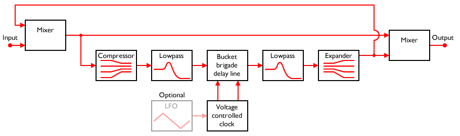 What’s a “compander”? It’s a simple way to make your circuit quieter! So how does it work? Let’s say we’ve got a fairly noisy effect, like a BBD. The basic idea is that you make quiet signals louder before you put them through the effect, and then you make them quiet again after the effect, […]