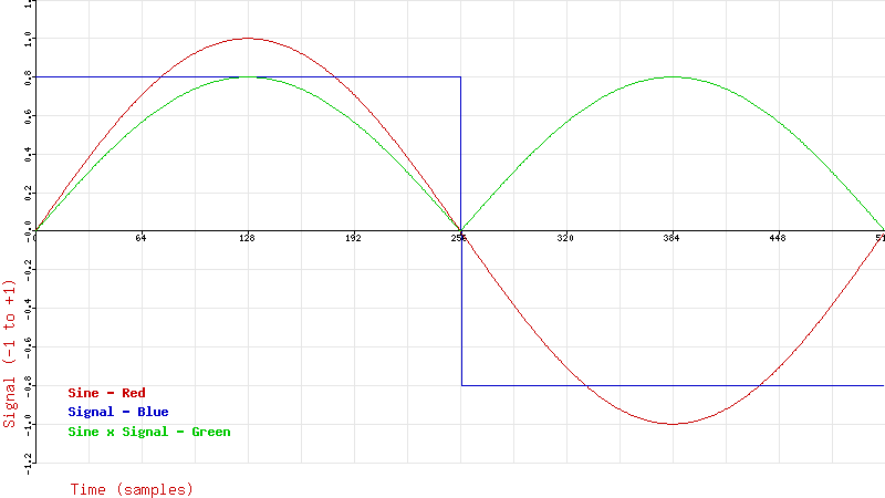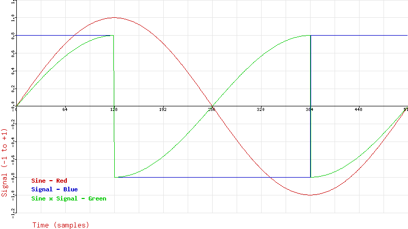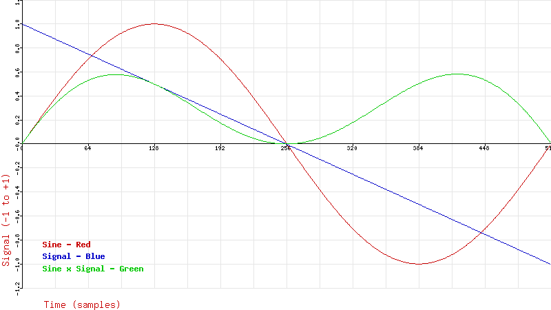 $product = $sine_value * $signal[$i]; // The green curve